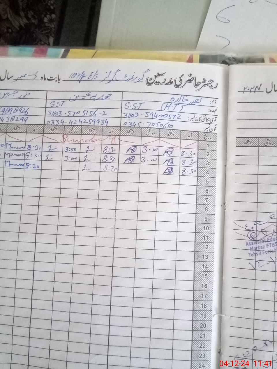 | Name: Ja**** Te**** Designation: (School Headmaster's/Headmistress's) SSE I T Phone/Cell Number: 03**** |
