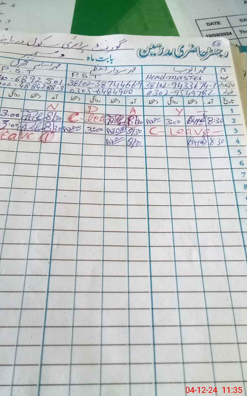 | Name: MU**** SA**** AZ**** Designation: (School Headmaster's/Headmistress's) PST HM Phone/Cell Number: 03**** |