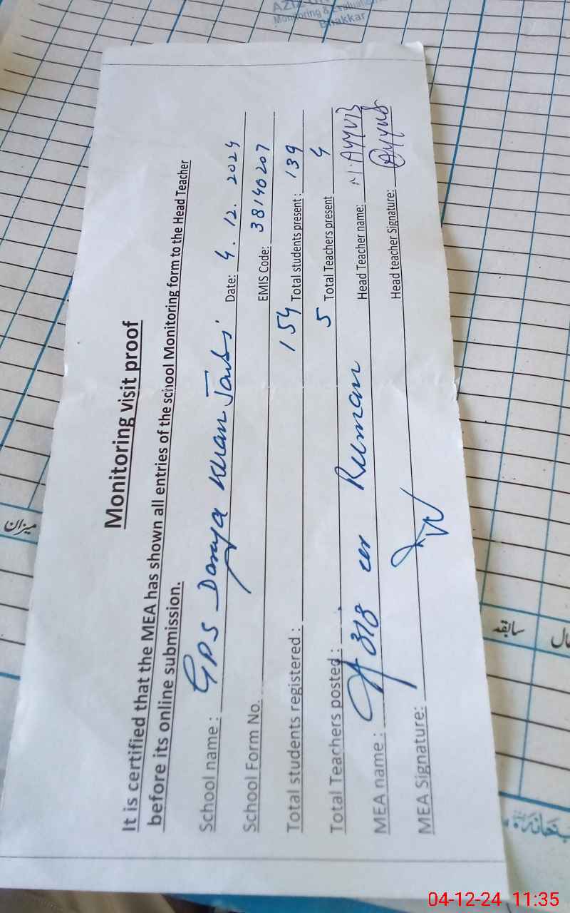 | EMIS Code: 38140207 | Name of School: GPS DARYA KHAN JANOOBI | |||