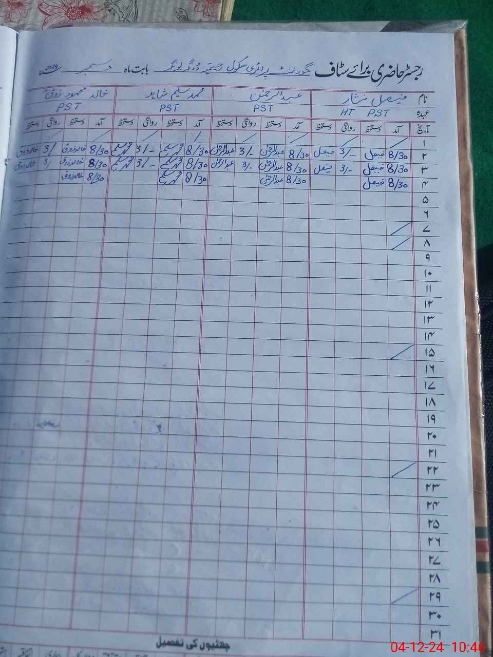 | CNIC | Full Name | Designation | R/C | Absence During Last Calender Month |