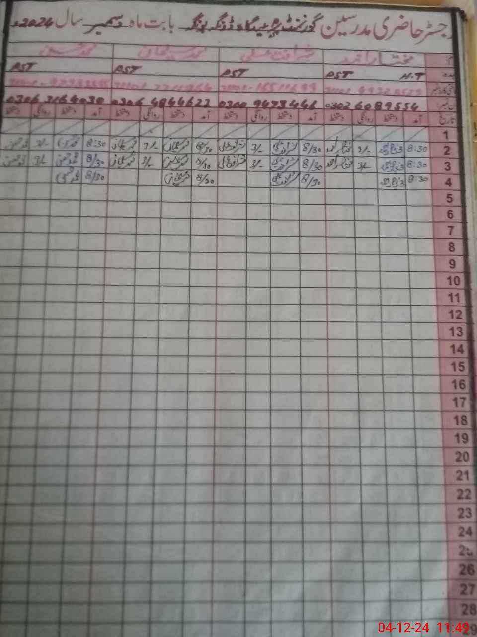 | Name: Mu**** Ah**** Designation: (School Headmaster's/Headmistress's) PST Phone/Cell Number: 03**** |