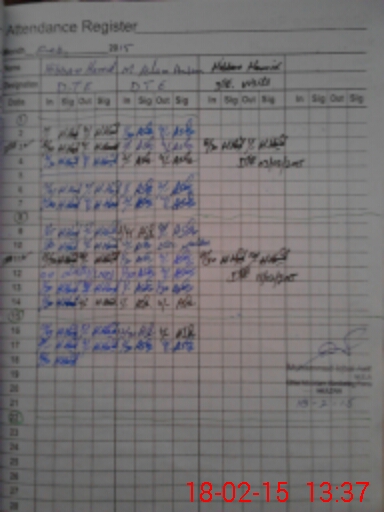 | CNIC | Full Name | Designation | R/C | Absence During Last Calender Month |