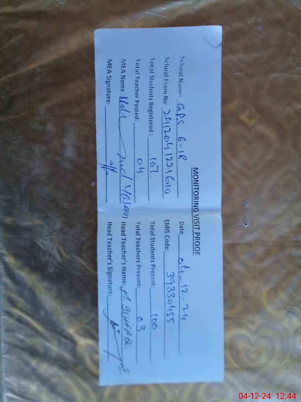 | EMIS Code: 39330455 | Name of School: GPS CHAK 6/1-R | |||