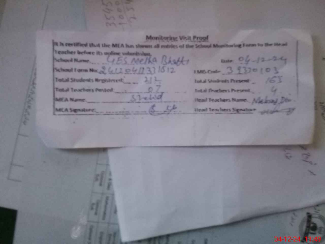 | EMIS Code: 39330103 | Name of School: GES MITHA BHATTI | |||
