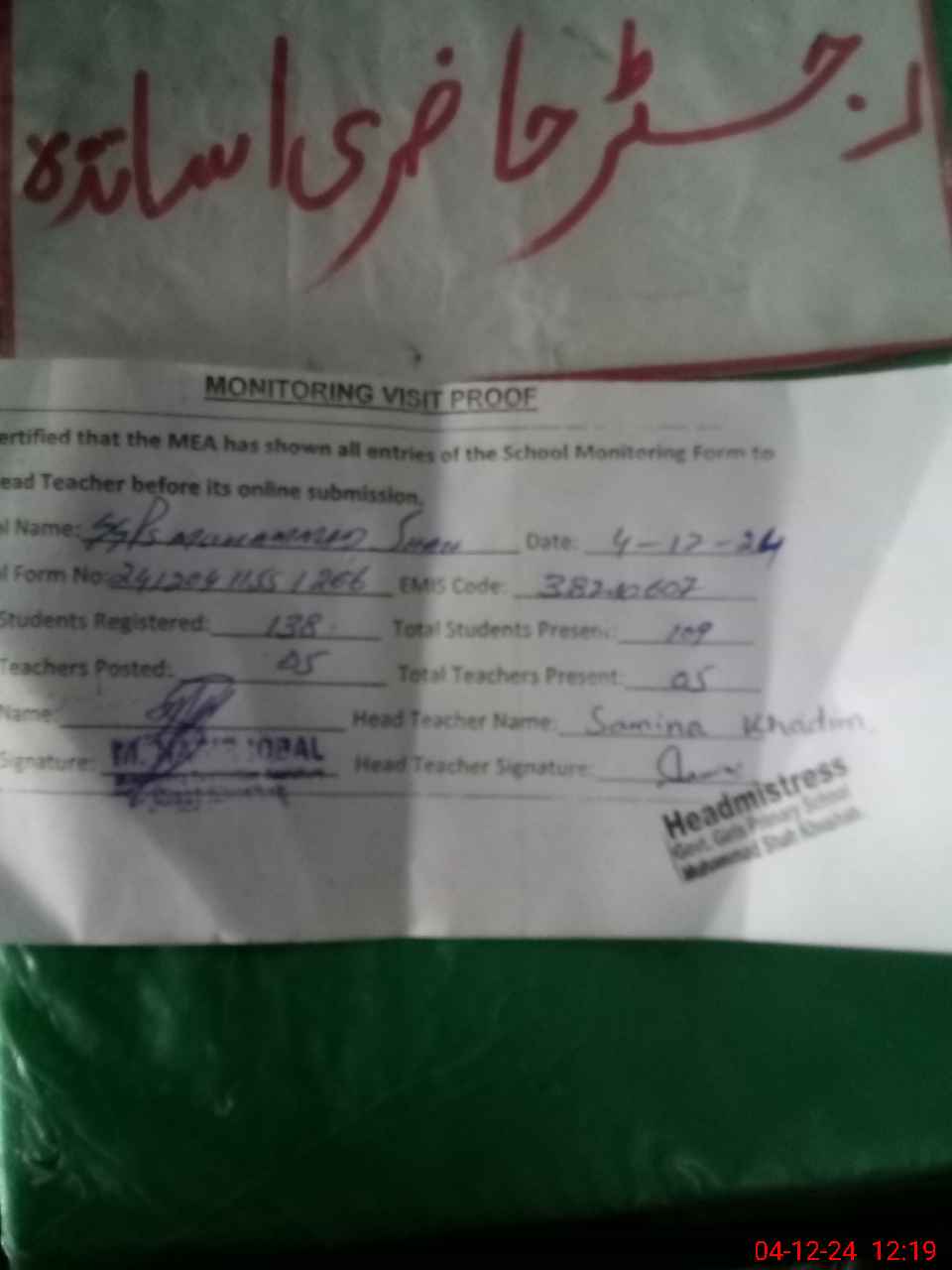 | EMIS Code: 38210607 | Name of School: GGPS MUHAMMAD SHAH | |||