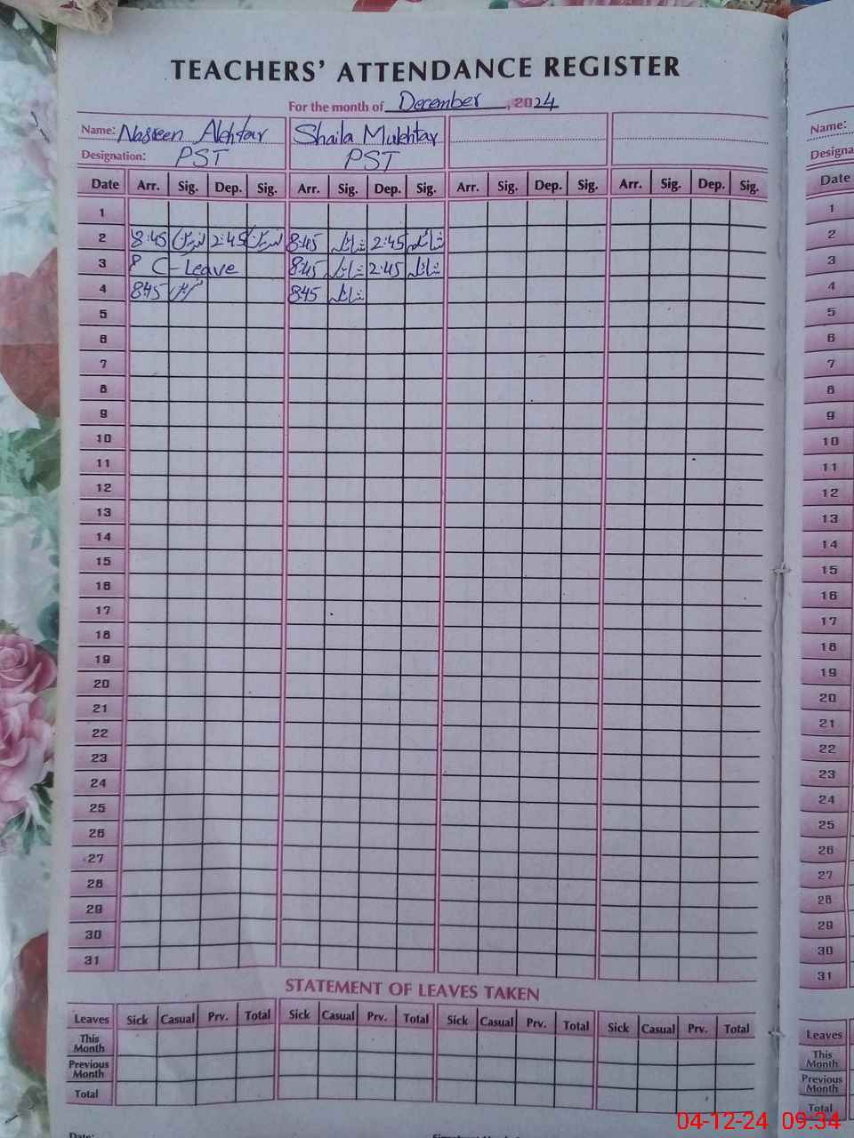 | Remarks (Use Separate Page if Required): Last month no visit of AEO Attendance was not marked on SIS PST Attia Sarwat retired In August 2024 but still showing in the school list | |||||
