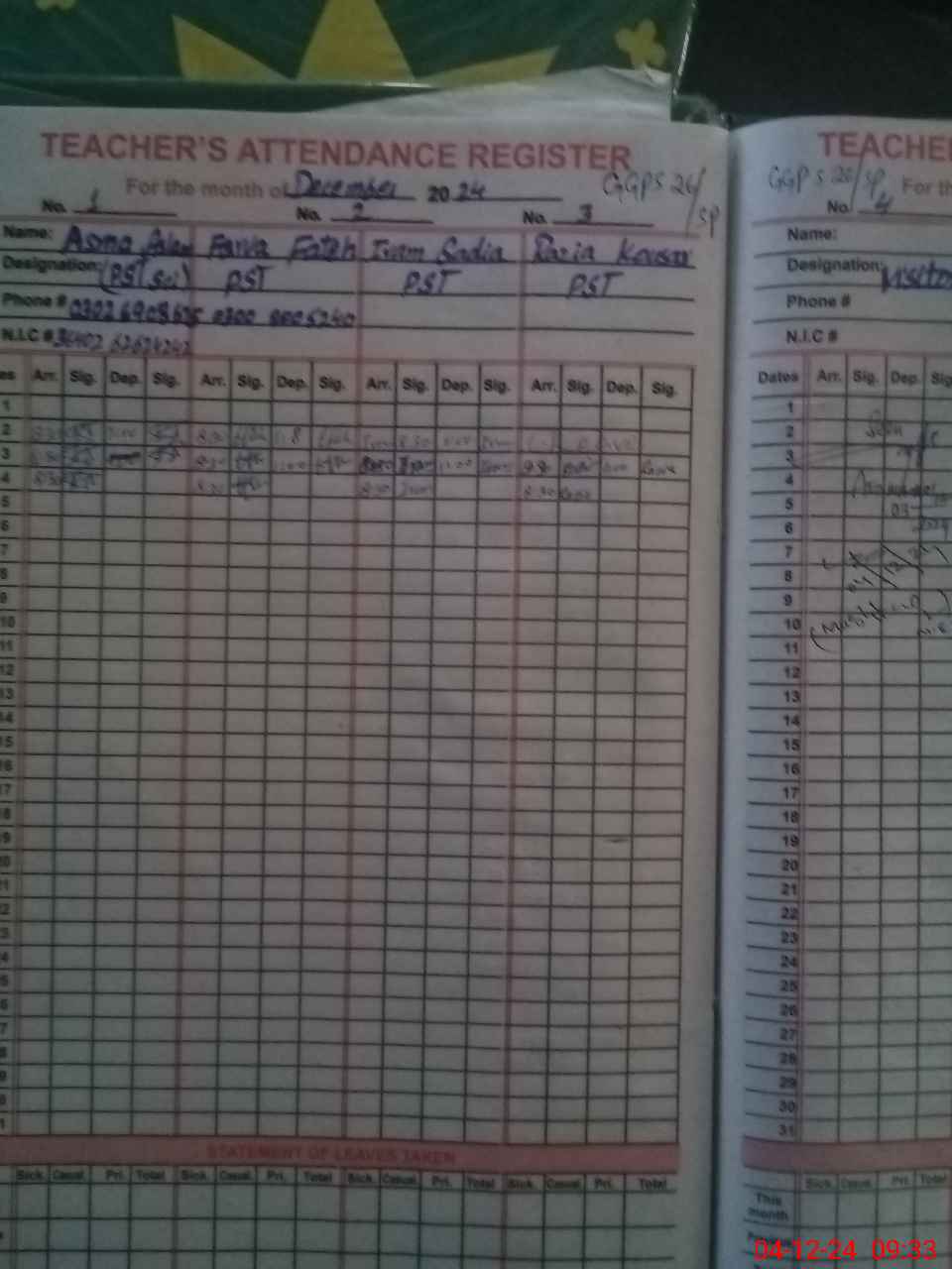 | Name: AS**** AS**** Designation: (School Headmaster's/Headmistress's) PST Phone/Cell Number: 03**** |