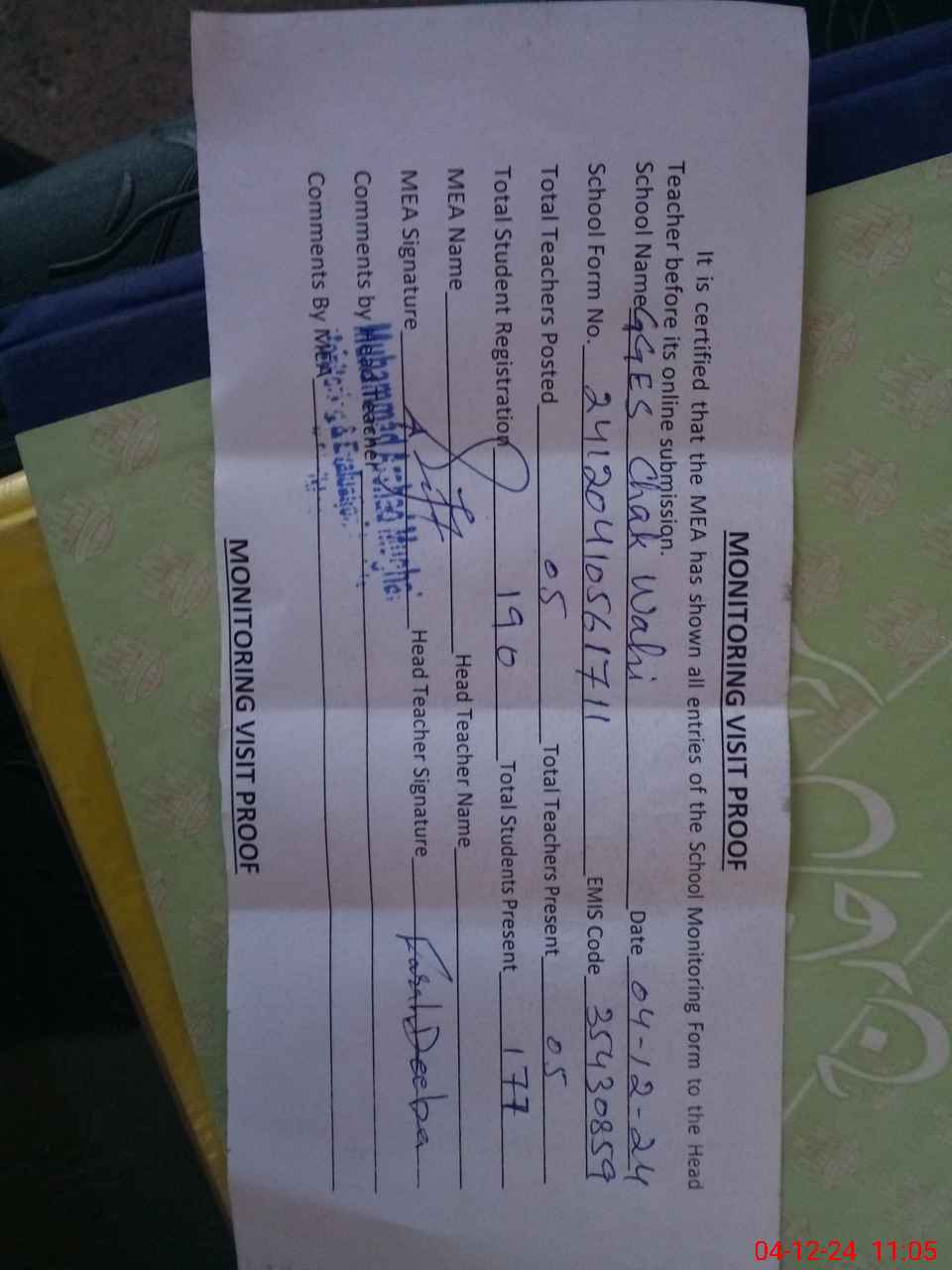 | EMIS Code: 35430859 | Name of School: GGES CHAK WAHI 522 | |||