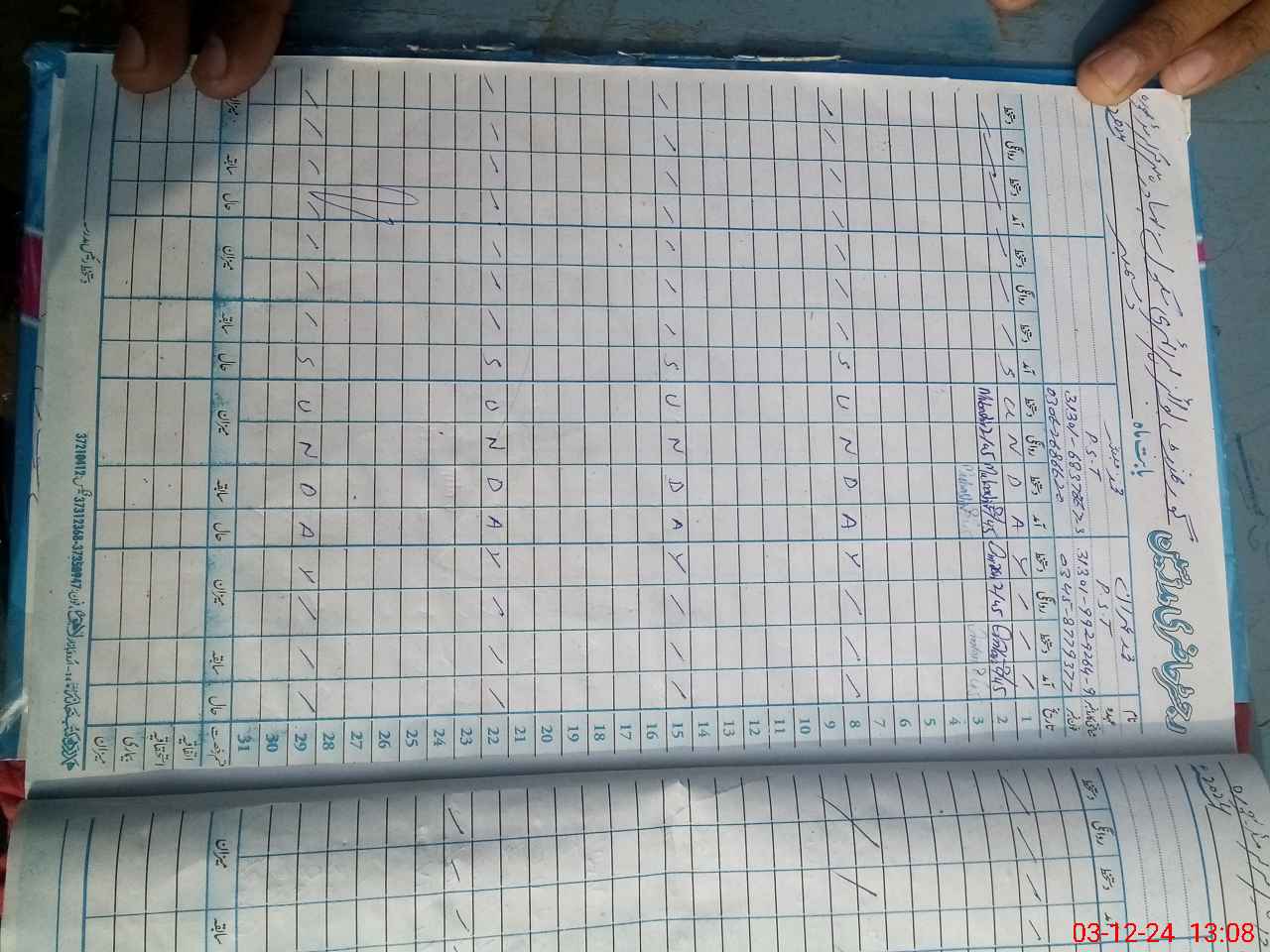 | CNIC | Full Name | Designation | R/C | Absence During Last Calender Month |