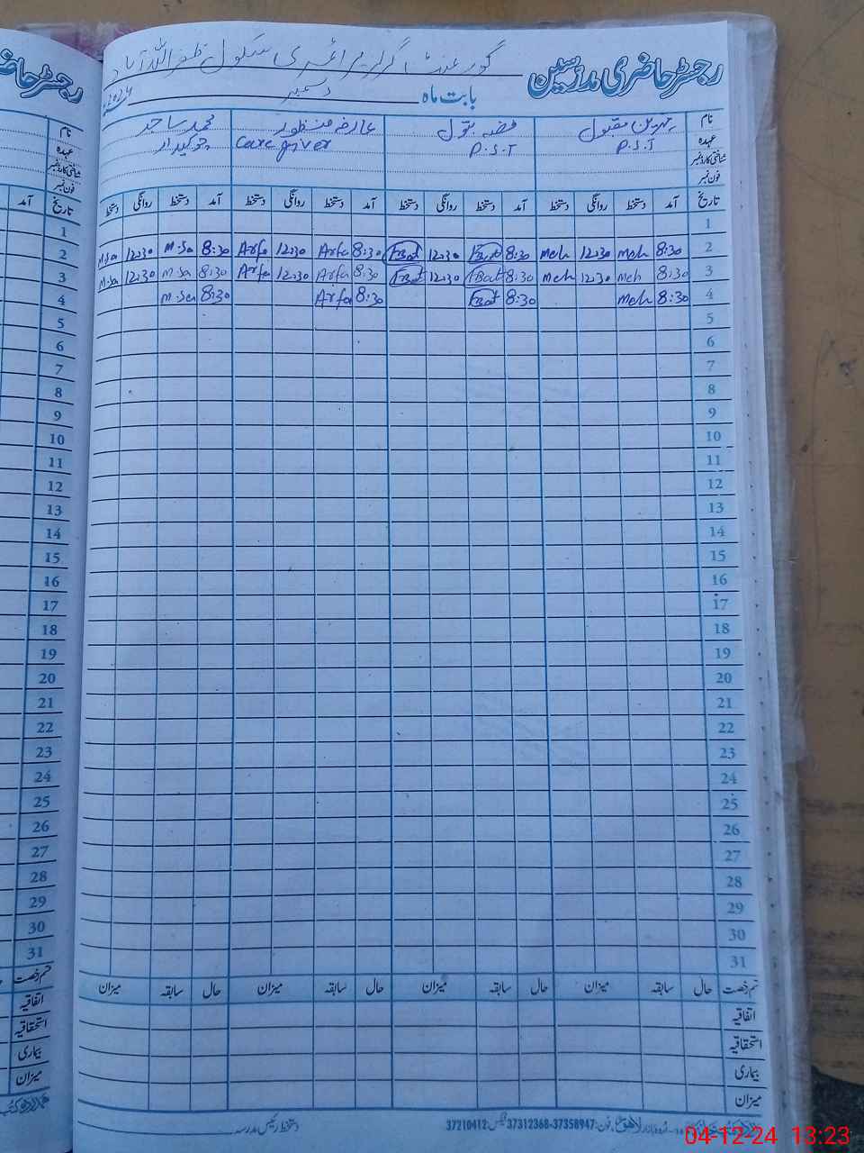 | Remarks (Use Separate Page if Required): Afternoon shift all classes attendance not marked last two days even their names not updated in December month Students attendance list not updated accordingly | |||||