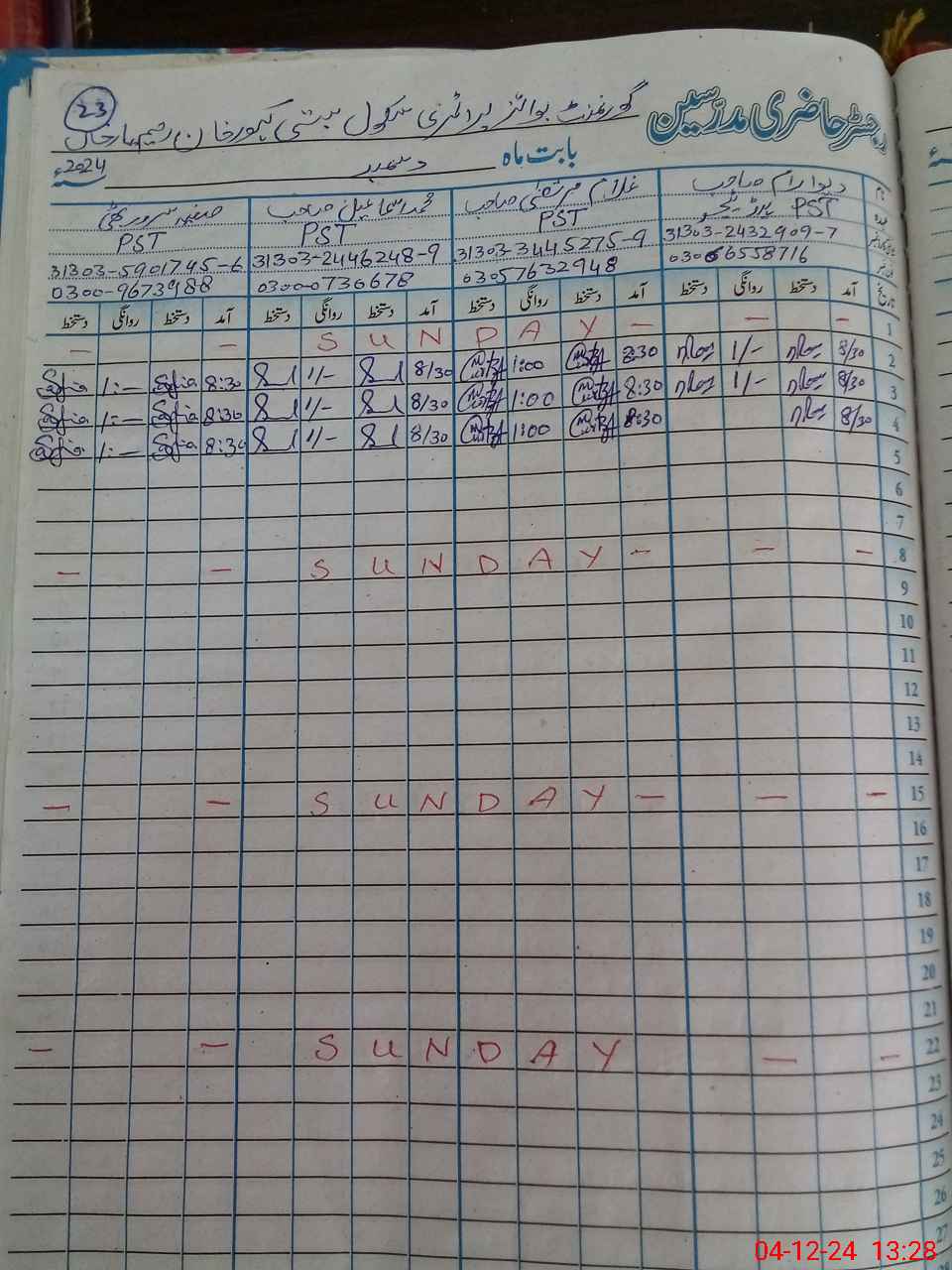 | Name: Gh**** Mu**** Designation: (School Headmaster's/Headmistress's) P S T Phone/Cell Number: 03**** |