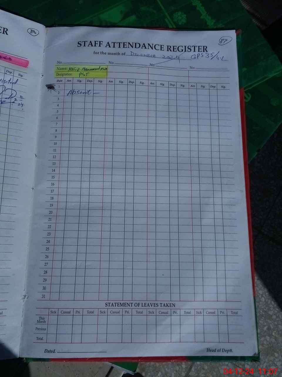 | 35**** | Ha**** Mu**** As**** Am**** | PST | Regular | 0 | 0 | 30 | 0 | 0 | 0 | 0 | 0 | 0 | Absent (Un-Authorized) |