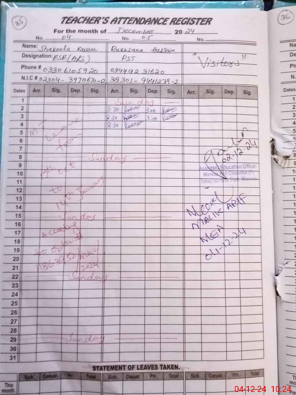 | 32**** | Sh**** Ko**** | ESE | Contract | 0 | 0 | 0 | 0 | 0 | 0 | 0 | 0 | 0 | Maternity |