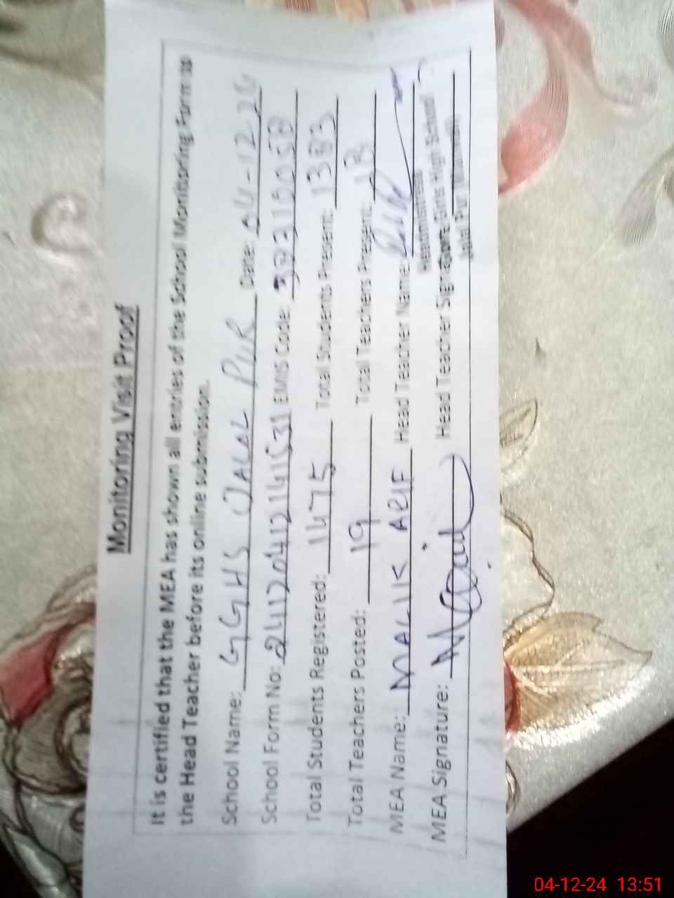| EMIS Code: 38310058 | Name of School: GGHS JALAL PUR | |||