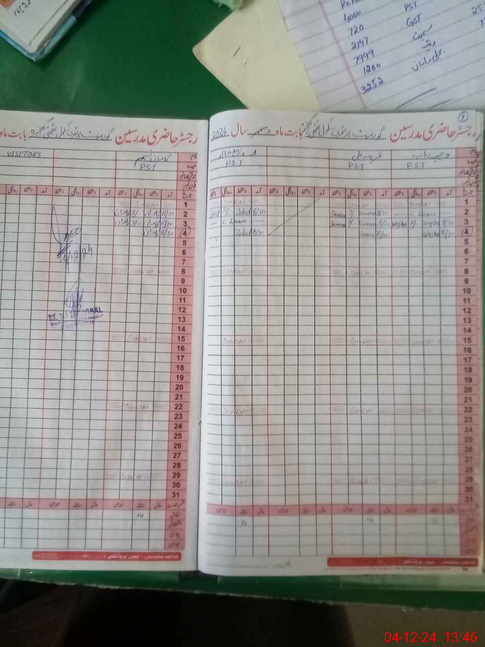 | CNIC | Full Name | Designation | R/C | Absence During Last Calender Month |