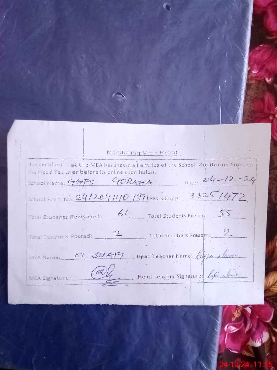 | EMIS Code: 33251472 | Name of School: GGPS GORAHA | |||