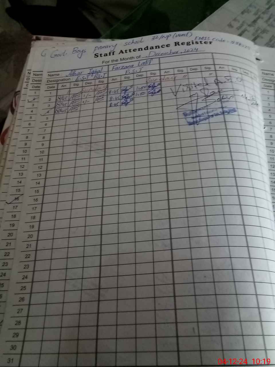 | Name: AT**** IQ**** Designation: (School Headmaster's/Headmistress's) EST Phone/Cell Number: 03**** |