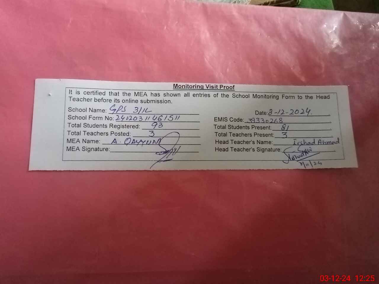 | EMIS Code: 39330268 | Name of School: GPS CHAK 3/1-L | |||