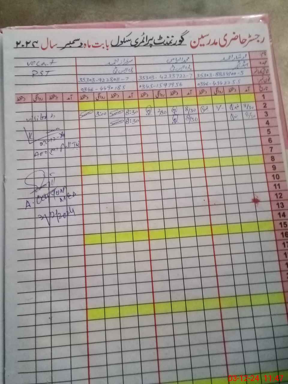 | Name: IR**** AH**** Designation: (School Headmaster's/Headmistress's) PTC/JV Phone/Cell Number: 03**** |