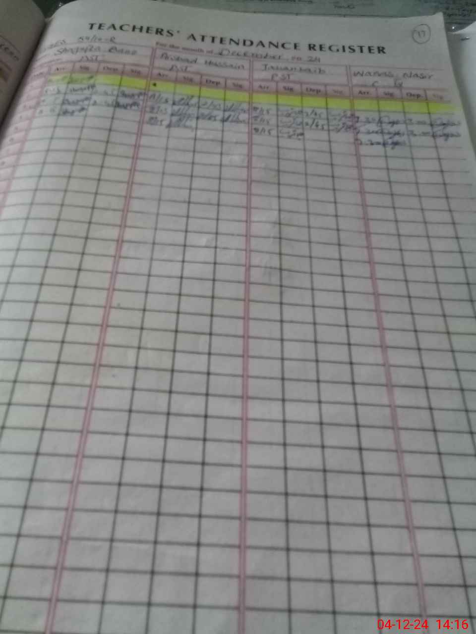 | CNIC | Full Name | Designation | R/C | Absence During Last Calender Month |