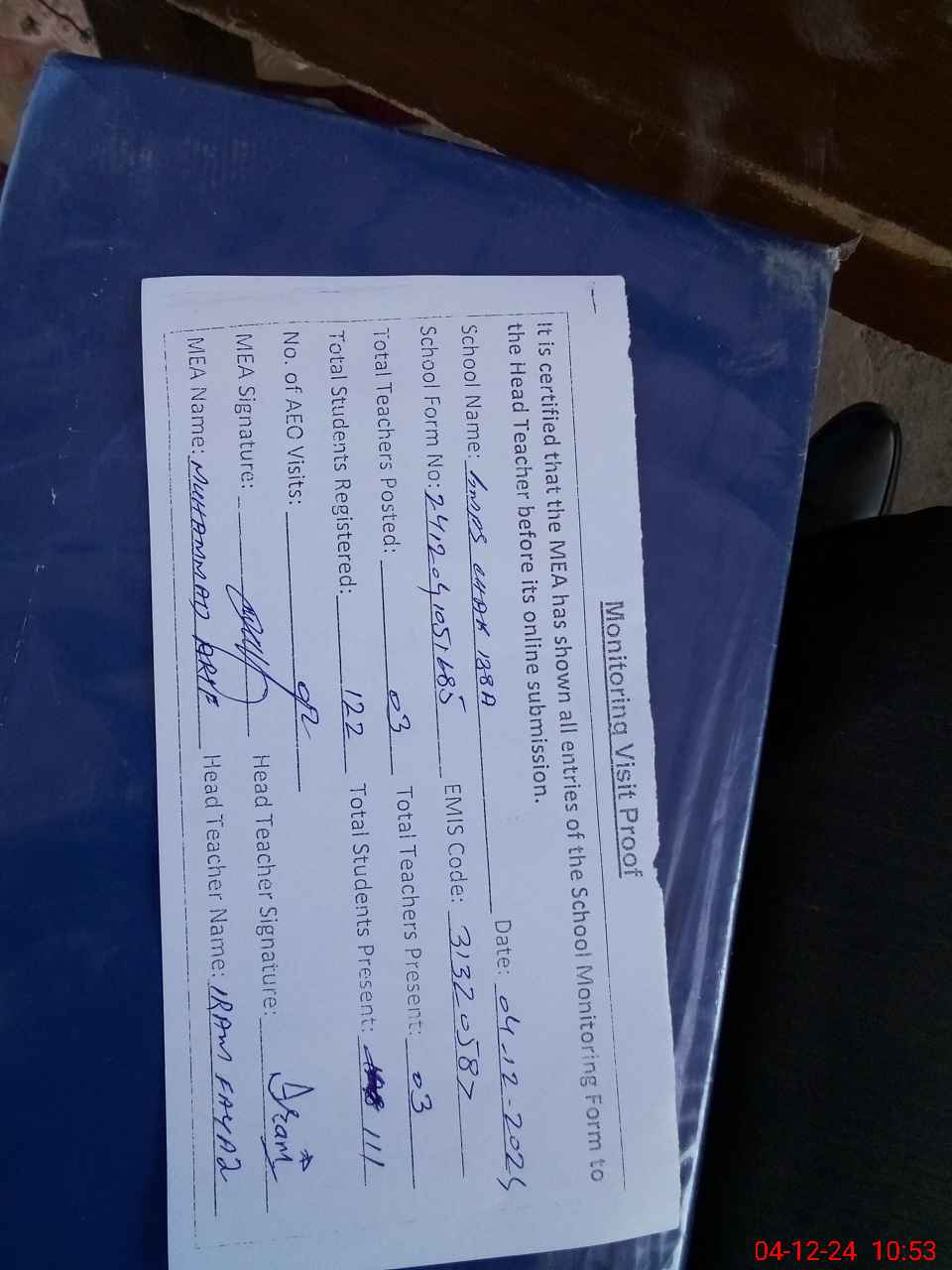 | EMIS Code: 31320587 | Name of School: GMPS CHAK NO.138/A | |||