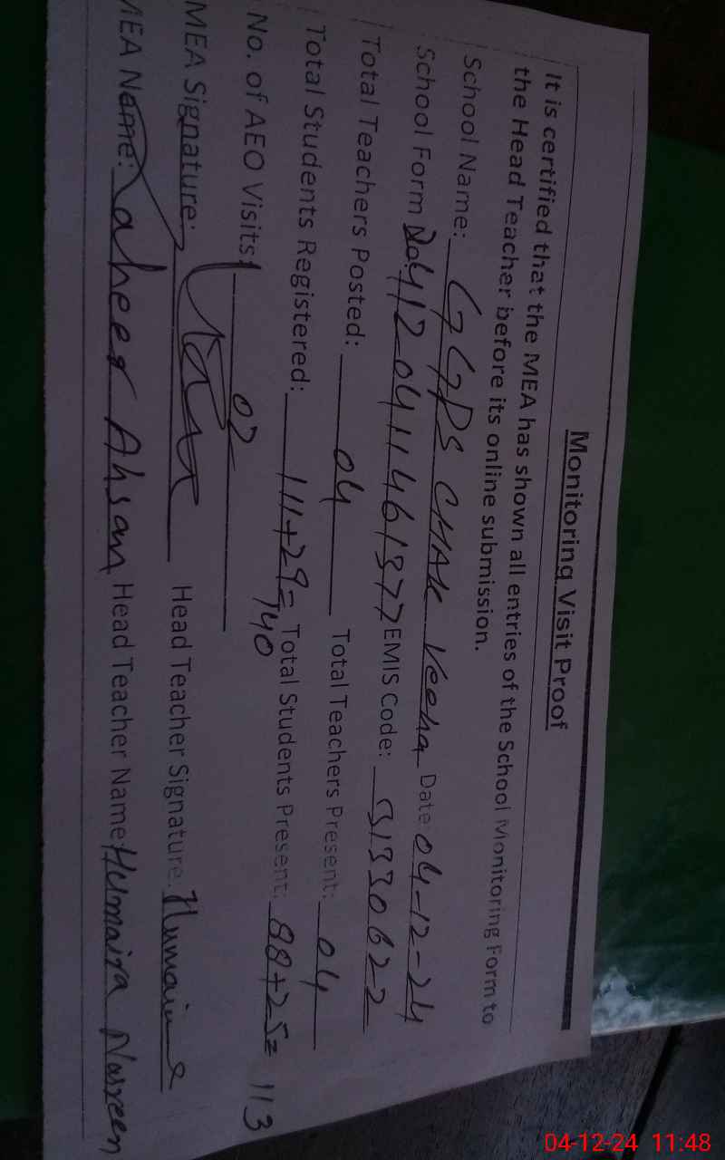| EMIS Code: 31330622 | Name of School: GGPS CHAK VEEHA | |||