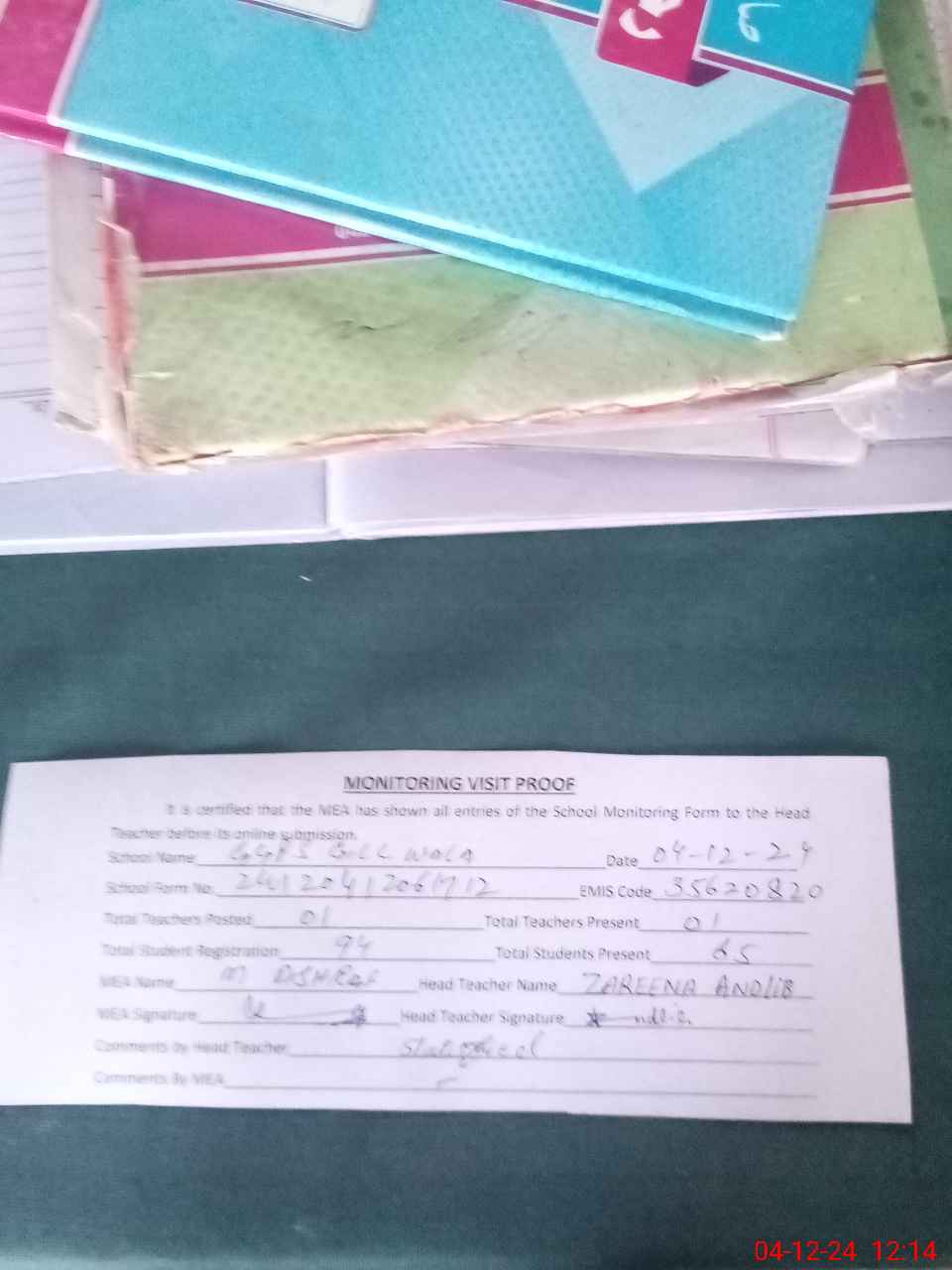| EMIS Code: 35620820 | Name of School: GGPS GILL WALA | |||