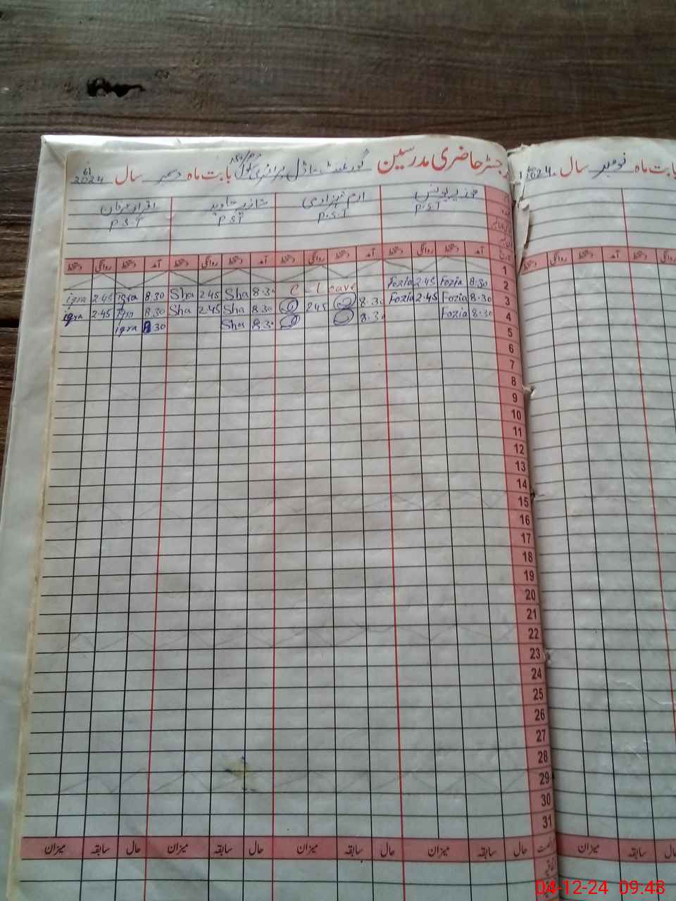 | CNIC | Full Name | Designation | R/C | Absence During Last Calender Month |