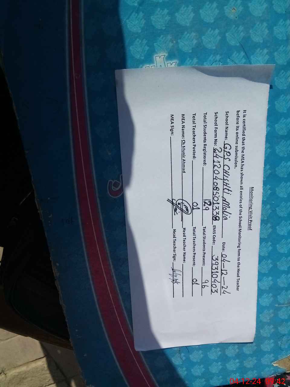 | EMIS Code: 39310403 | Name of School: GPS CHISHTI MOLIA | |||