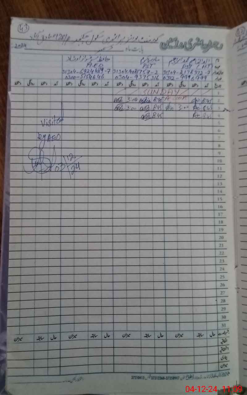 | Name: Ab**** UlQa**** Designation: (School Headmaster's/Headmistress's) PST/PTC/JV Phone/Cell Number: 03**** |