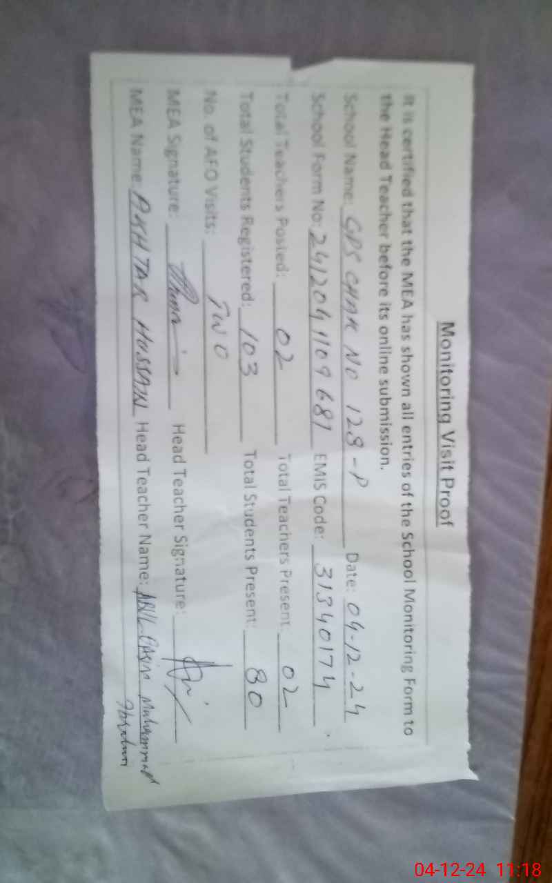 | EMIS Code: 31340174 | Name of School: GPS CHAK NO 128/P | |||