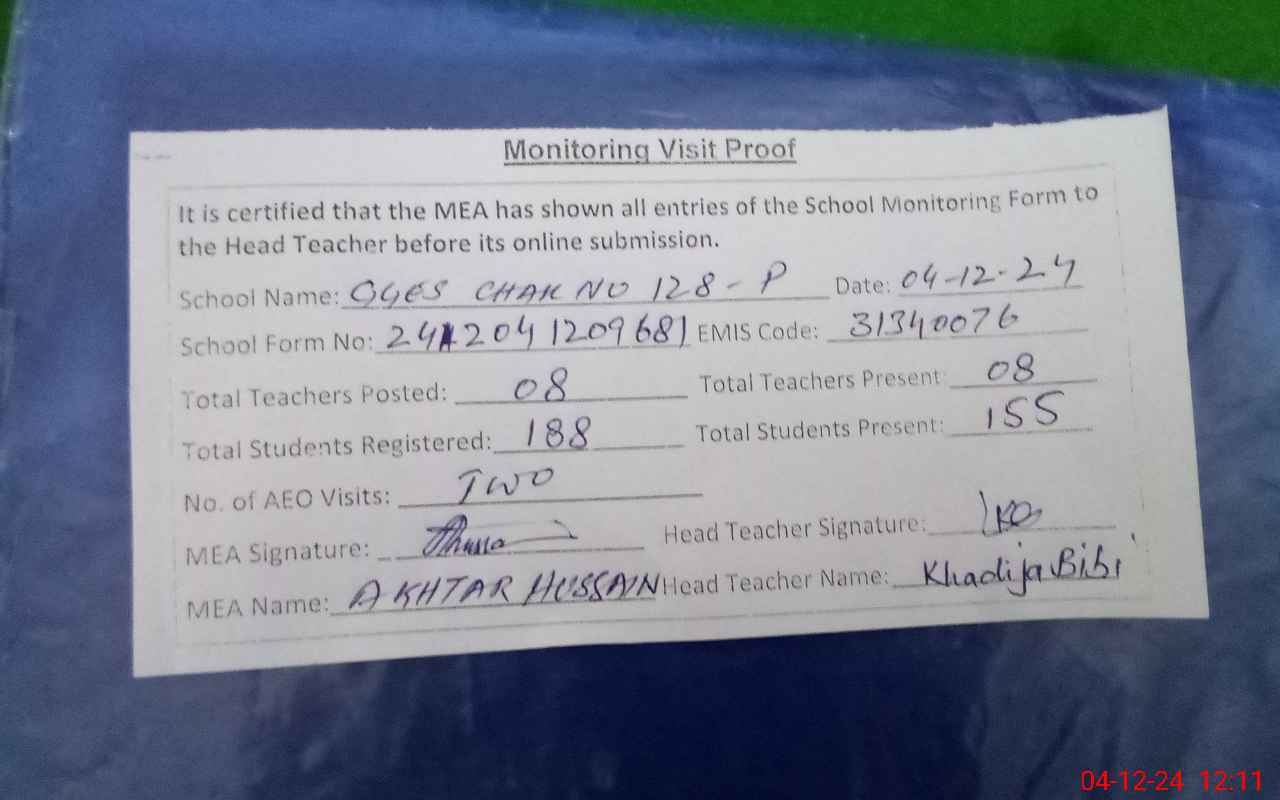 | EMIS Code: 31340076 | Name of School: GGES CHAK 128/P | |||