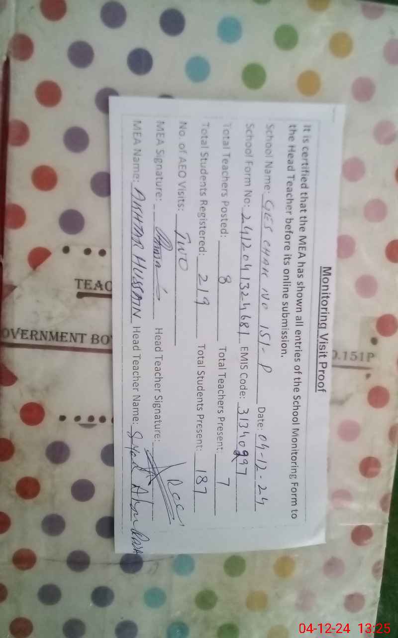 | EMIS Code: 31340297 | Name of School: GES CHAK NO 151/P | |||