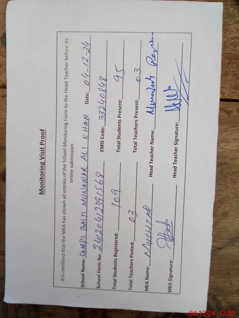 | EMIS Code: 33240848 | Name of School: GMPS BASTI MUNAWAR ALI KHAN | |||
