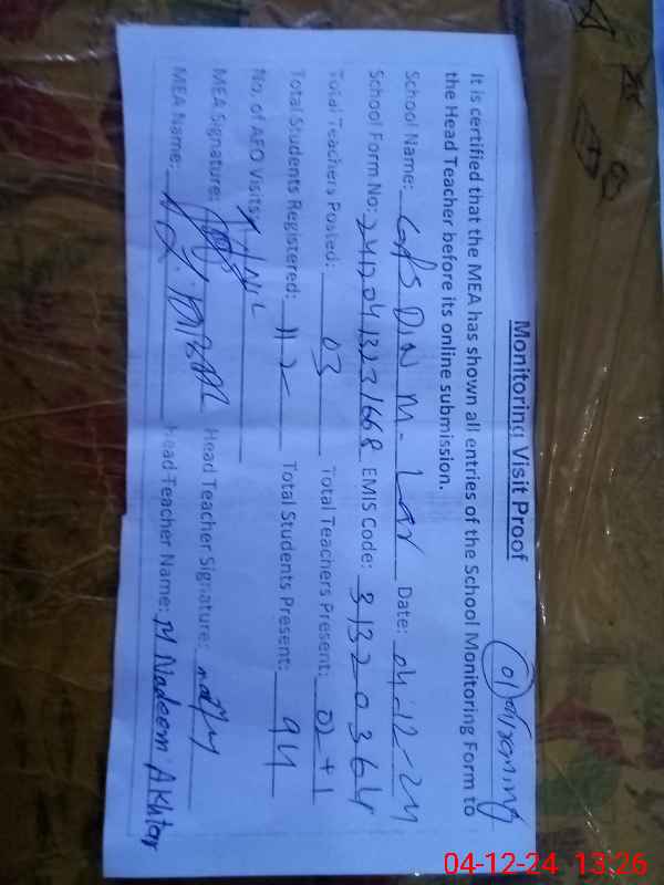 | EMIS Code: 31320364 | Name of School: GPS DIN MUHAMMAD LAR | |||