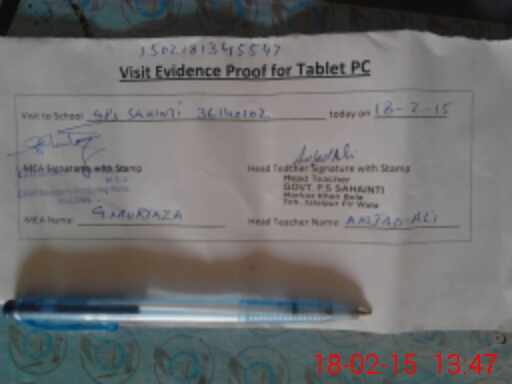 | Attendance Register | Head Teacher | MEA with School | Visit Proof |