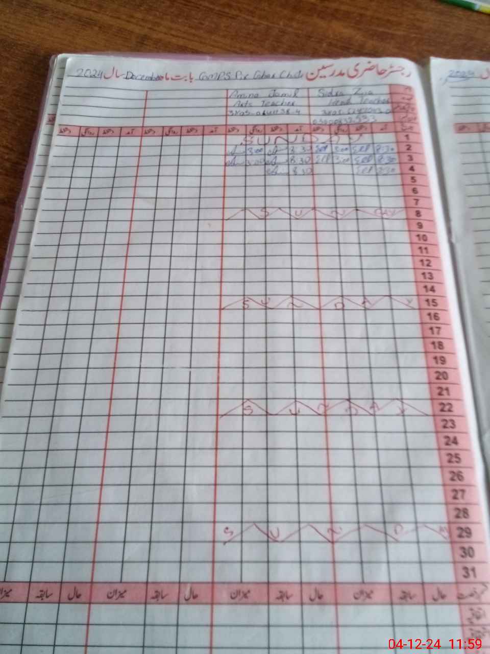 | CNIC | Full Name | Designation | R/C | Absence During Last Calender Month |