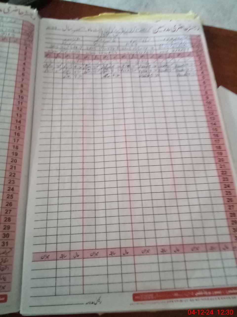 | CNIC | Full Name | Designation | R/C | Absence During Last Calender Month |