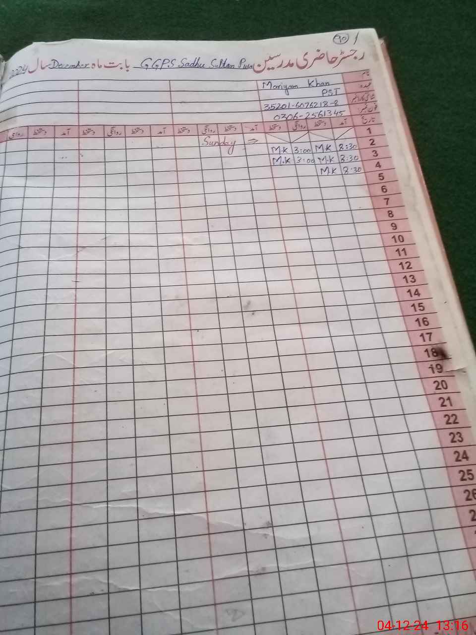 | Name: Ma**** Kh**** Designation: (School Headmaster's/Headmistress's) PST Phone/Cell Number: 03**** |