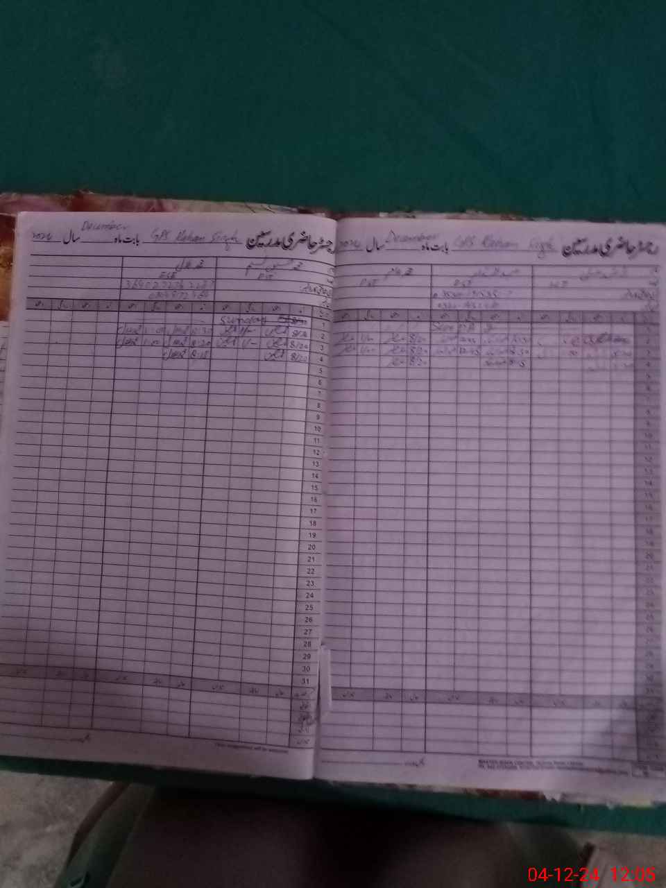 | CNIC | Full Name | Designation | R/C | Absence During Last Calender Month |
