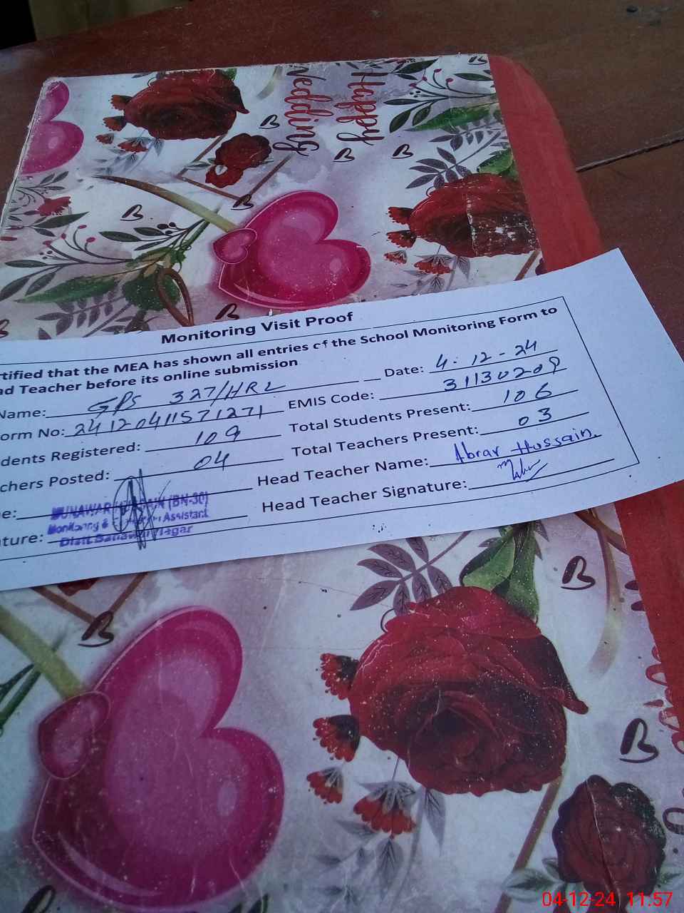 | EMIS Code: 31130209 | Name of School: GPS CHAK NO.327/HRL | |||