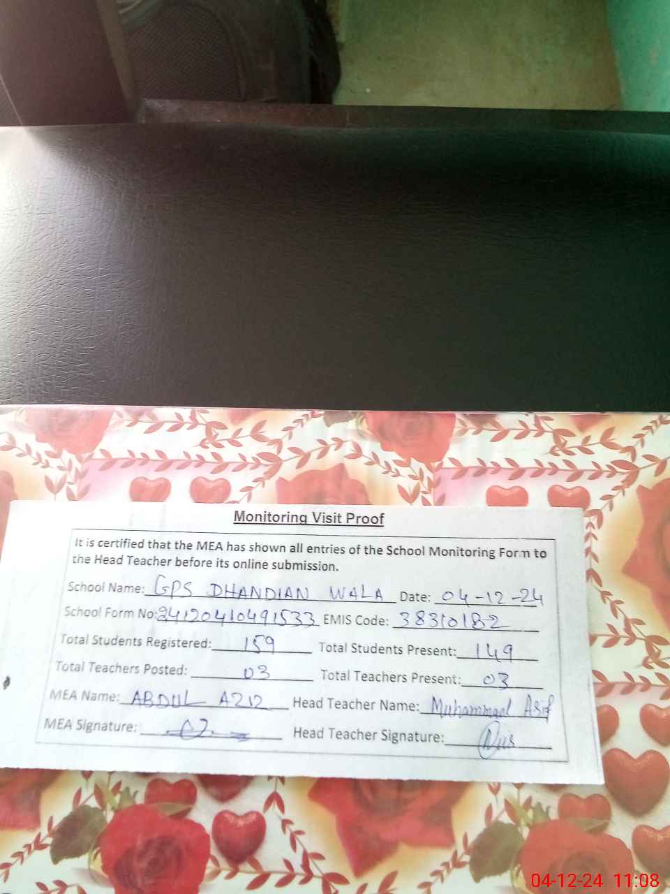| EMIS Code: 38310182 | Name of School: GPS DHANDIAN WALA | |||