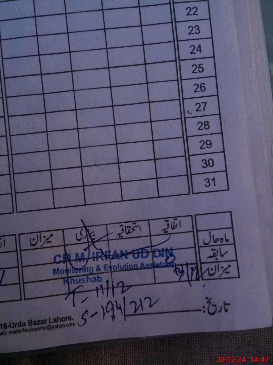 | CNIC | Full Name | Designation | R/C | Absence During Last Calender Month |