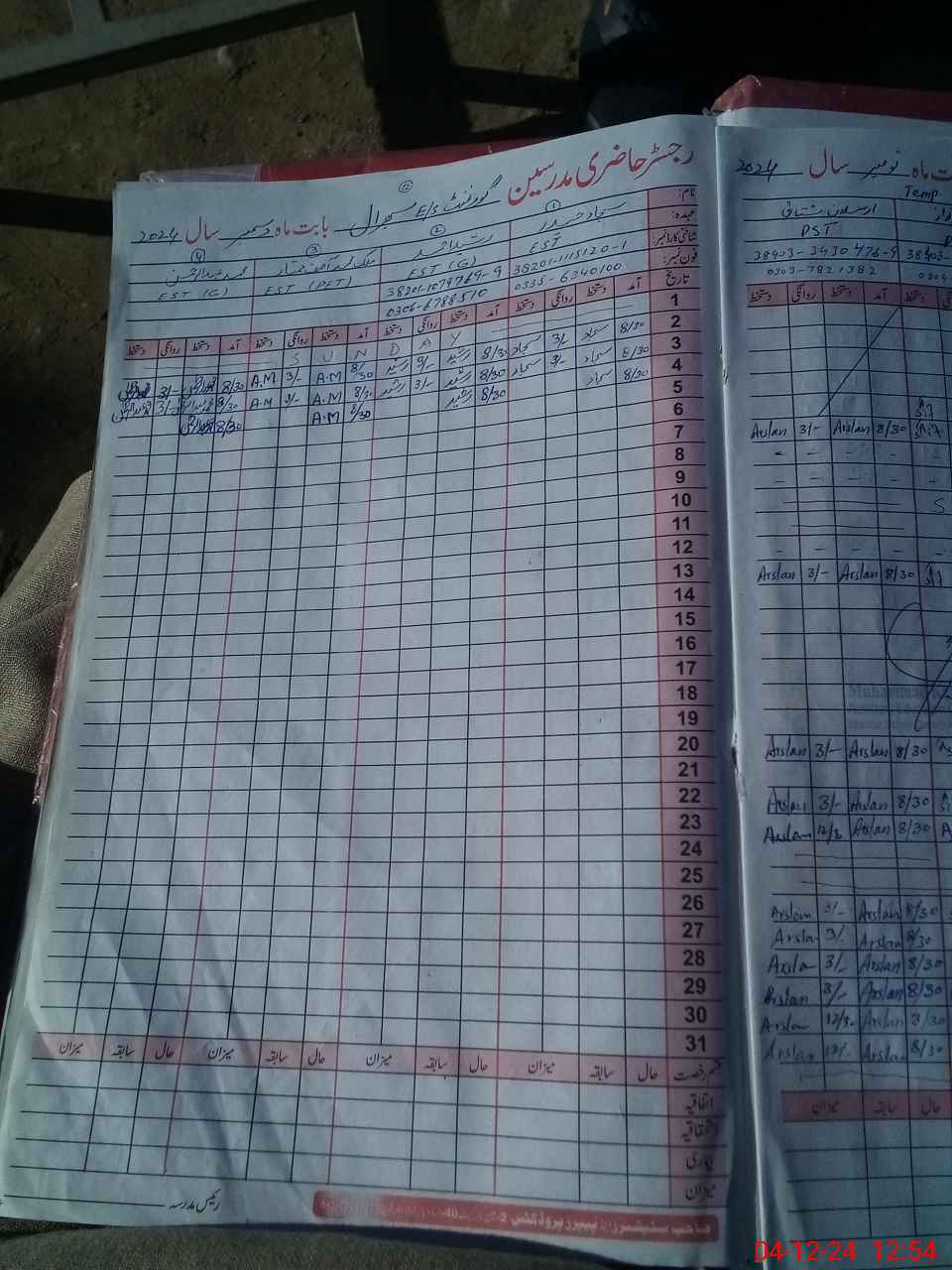 | CNIC | Full Name | Designation | R/C | Absence During Last Calender Month |
