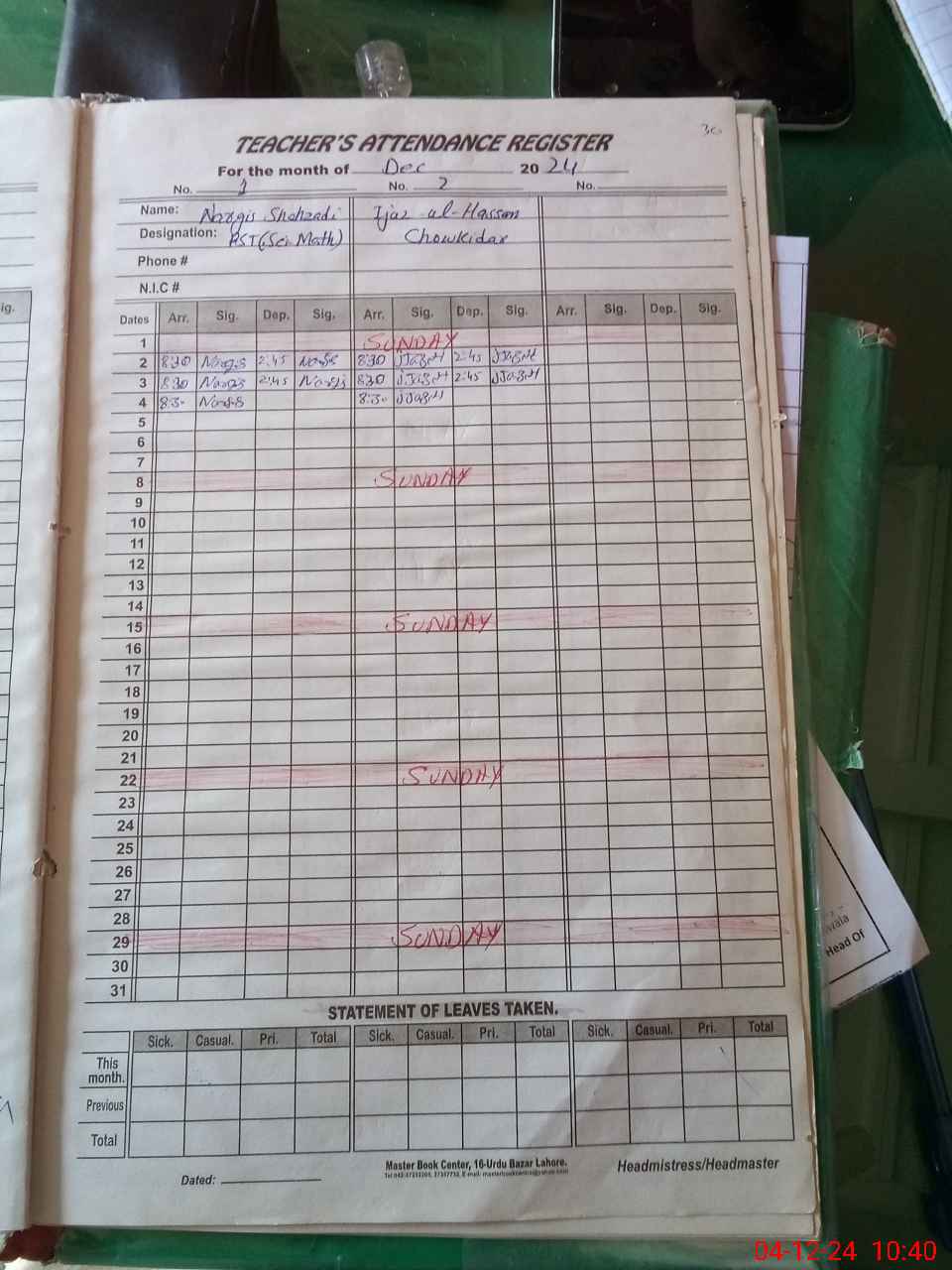 | Name: NA**** SH**** Designation: (School Headmaster's/Headmistress's) PST Phone/Cell Number: 03**** |