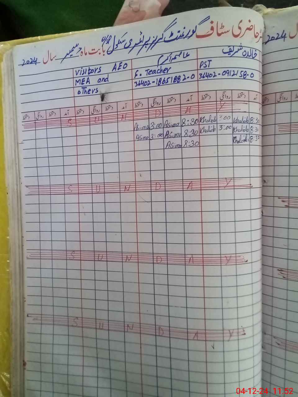 | Name: KH**** SH**** Designation: (School Headmaster's/Headmistress's) PST Phone/Cell Number: 03**** |