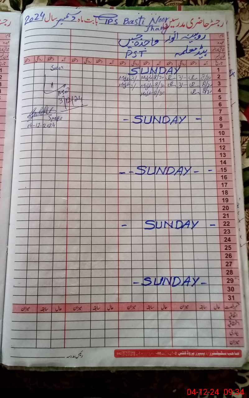 | Name: RU**** AN**** Designation: (School Headmaster's/Headmistress's) PST Phone/Cell Number: 03**** |