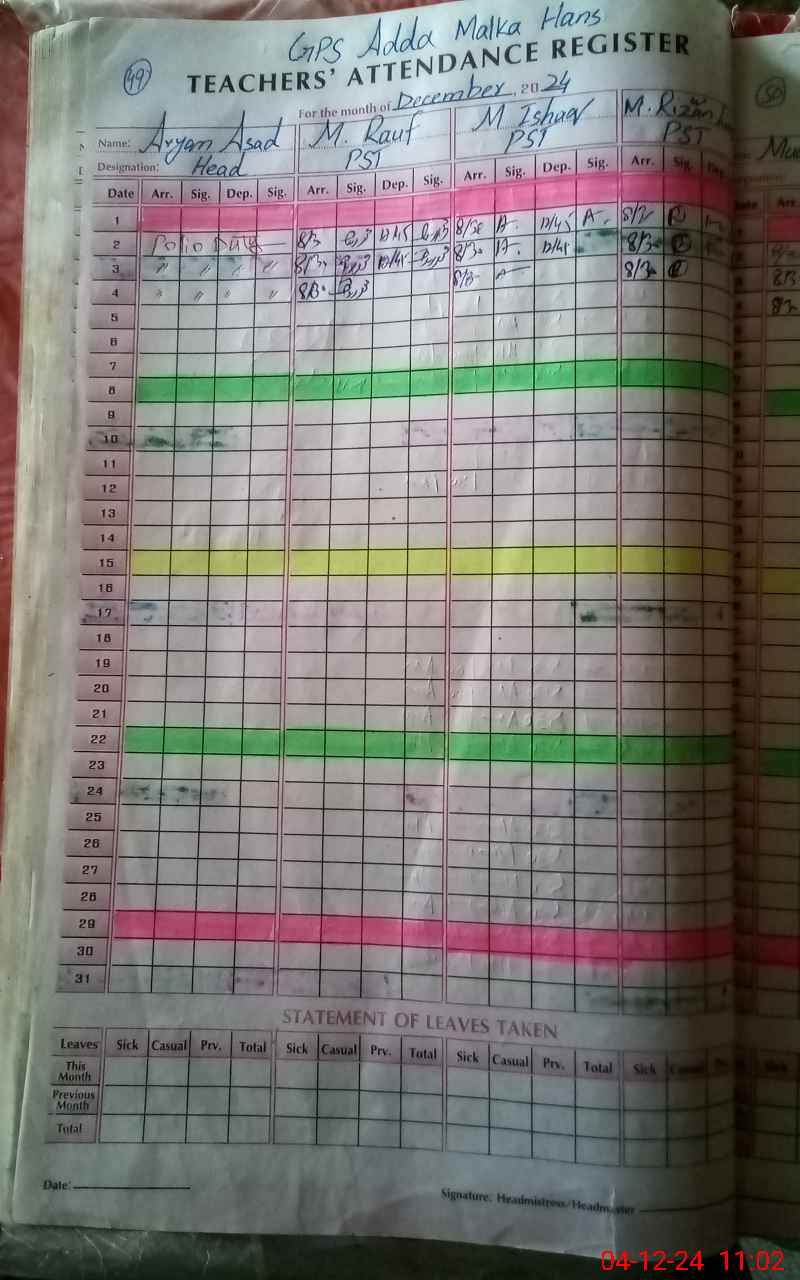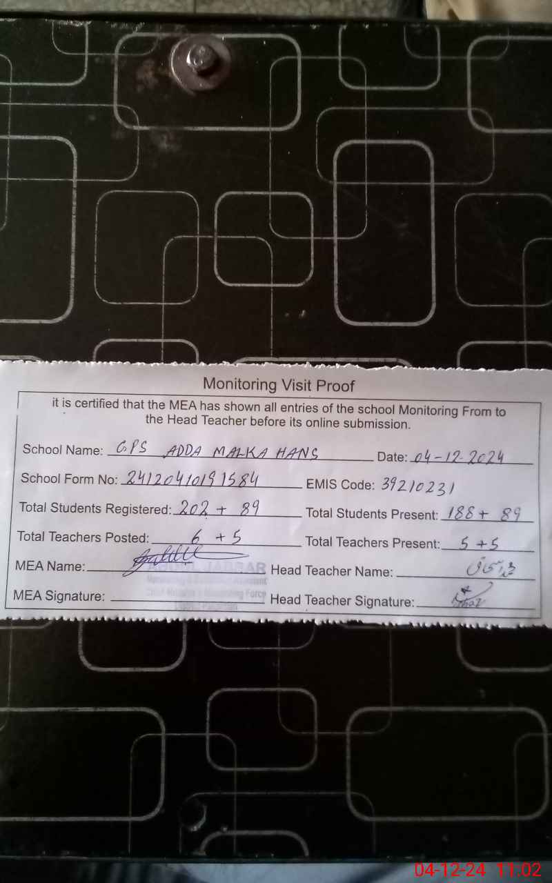 | EMIS Code: 39210231 | Name of School: GPS ADDA MALKA HANS | |||
