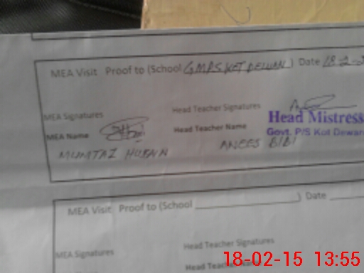 | Certified that this School was Inspected by the Undersigned MEA/DMO Today and the Information Stated Above is as Per Record. | |||||