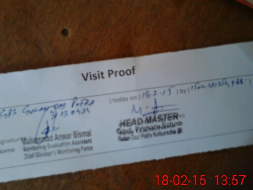 | Attendance Register | Head Teacher | MEA with School | Visit Proof |